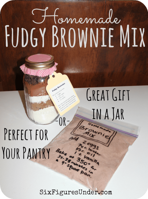My little 7 year old boy is stirring up 2 packs of brownie mix right now that we put together two weeks ago. Nice that it’s something even the little ones can help with!
